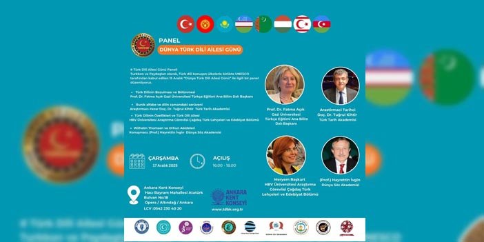 Ankara Kent Konseyi ev sahipliğinde, TURKKON Turan Devletleri Birleşik Konfederasyonu organizasyonunda gerçekleştirilecek “Dünya Türk Dili Ailesi Günü Paneli”, Türkçenin geçmişten bugüne uzanan serüvenini kapsamlı biçimde masaya yatıracak.