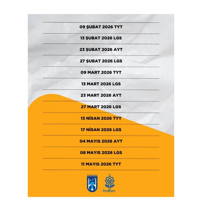 Belediyeden yapılan açıklamaya göre deneme sınavları 9 Şubat’ta TYT ile başlayacak ve 11 Mayıs’ta yine TYT sınavıyla sona erecek. LGS ve AYT denemelerinin de yer aldığı programla öğrencilerin eksiklerini görmeleri ve özgüven kazanmaları hedefleniyor. Kayıt ve detaylı bilgi için 0312 762 66 36 numaralı telefondan başvuru yapılabilecek.