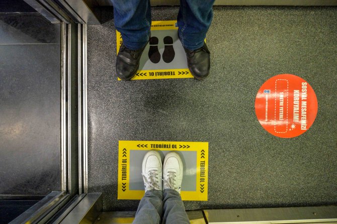 Sosyal mesafenin korunması uyarısını taşıyan sticker’larla çalışanların sağlığını da önceleyen Büyükşehir Belediyesi, asansörlere salgın riskine karşı 4 kişinin binmesi uyarısında bulunuyor. Büyükşehir personelinden Başak Yılmaz, “Personel sağlığını korumak için alınan önlemden memnunum. Başta Büyükşehir Belediye Başkanımız Mansur Yavaş olmak üzere emeği geçen herkese teşekkür ederim” derken, Esra Okkalı, “Belediye’de başlatılan sosyal mesafe uygulamasından gerçekten memnun kaldım” diye konuştu. Sağlık için sosyal mesafe uyarısını içeren sticker’ların etkili olduğunu düşündüğünü söyleyen Osman Özcan da, “Belediyemizin salgın hastalıktan dolayı başlattığı sosyal mesafeyi koruyalım uygulamalarını yerinde buluyorum” değerlendirmesinde bulundu.