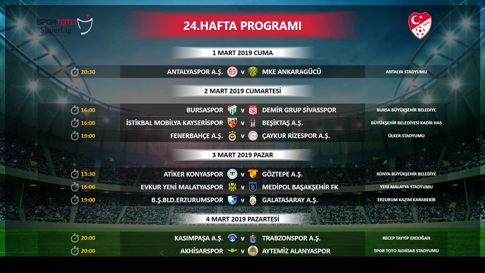 Süper Lig'de 23 ve 24. hafta programları belli oldu.