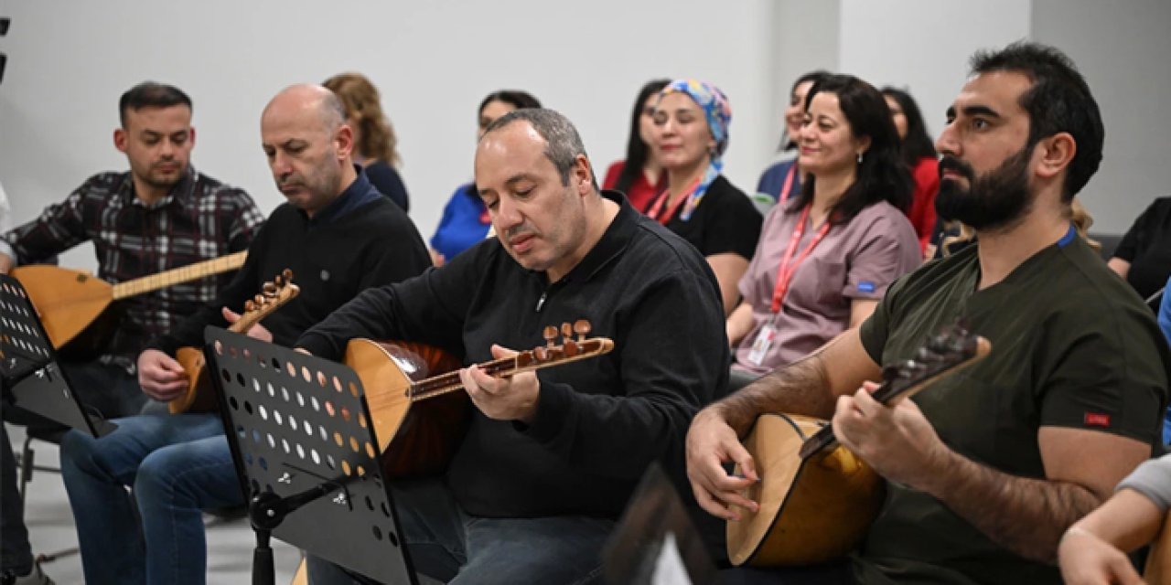 Ankara’daki Etlik Şehir Hastanesi’nde görev yapan sağlık çalışanları, gönüllü olarak oluşturdukları müzik topluluğuyla özel günlerde konserler veriyor. Türk halk müziği eserleriyle hastalara moral, çalışanlara motivasyon sağlanıyor.