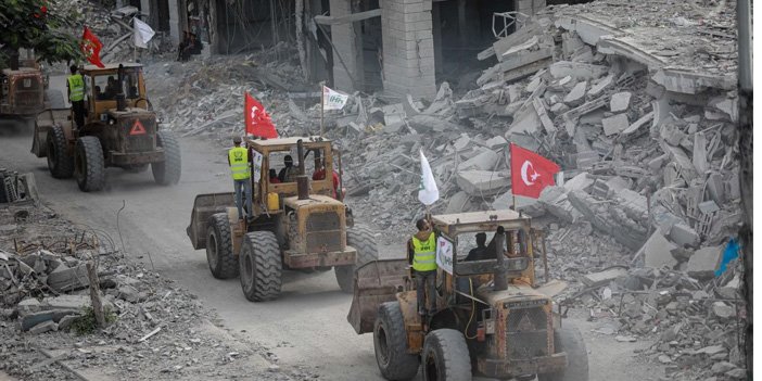 Gazze'de Türk bayraklı konvoy şehre giriş yaptı: Enkaz kaldırma çalışmaları başladı
