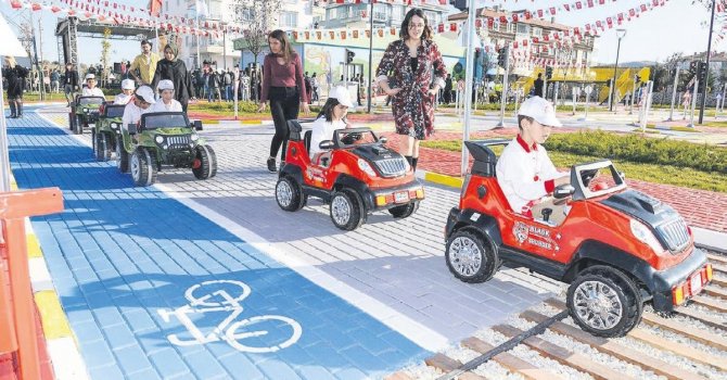 Mamak Belediyesi’nin çocukların trafikte daha da bilinçlenmesi ve trafik kurallarına duyarlı bir nesil olması hedefiyle ilçeye kazandırdığı Trafik Eğitim Parkı’na çocuklar yoğun ilgi gösteriyor. 5 bin 400 metrekarelik alanda kurulan ve içinde yaya geçitleri, dönel kavşaklar, konutlar, hastane, okul, amfi tiyatro, kafeterya, kule, bisiklet yolu, tren yolu, sinyalizasyonlar, yön işaretleri gibi trafik levhalarının olduğu trafik eğitim parkında, çocuklar özel araçlara biniyor.