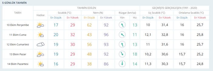 İZMİR 5 GÜNLÜK HAVA DURUMU